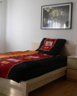 Der Schlafbereich verfügt über Bett von 1,40 m, Nachttisch, Schrank.